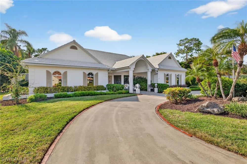 This impressive single-family residence in the prestigious Wyndemere Country Club delivers exceptional space, versatility, and outdoor living on one of the neighborhood's largest lots. Situated in the desirable Mahogany Bend, the home sits on .78-acres with mature landscaping, complete privacy, and ample room for future expansion. The residence offers 3,040 square feet under air (with a total living area of 6,444 square feet) and includes 3 bedrooms, a dedicated office plus a second flexible den/office space ideal for today's dual-work-from-home lifestyles. One of the feature highlights of this home is the expansive outdoor entertaining area, with a large pool and spa complemented by an expansive, covered lanai that flows directly from the kitchen bar, creating seamless indoor-outdoor living. Perfect for entertaining large gatherings or intimate family dinners. Inside, an abundance of natural light pours through oversized windows and sliders. Blending coastal sophistication with everyday comfort, this home shines with a bright, modern refresh, featuring newly installed luxury vinyl flooring throughout the main areas, recessed lighting, contemporary ceiling fans and chandeliers, plush bedroom carpeting, new paint throughout and brand new HVAC. The garage features custom-built storage closets with space for golf clubs, tennis gear, beach equipment, and all the active essentials for Naples living. This rare offering combines substantial space, prime location, and strong potential in a top-tier golf community, ideal for those seeking a large estate in one of Naples premier clubs. Immediate golf is available! Wyndemere, an award-winning 2025-2026 Platinum Club of America, offers unmatched amenities, including 27 holes of Arthur Hills golf, 10 HarTru tennis courts, pickleball courts with 165 stadium seating for pickleball pro exhibitions, active bocce teams, full croquet, a resort style zero entry pool, golf simulator, putting greens, driving ranges, 2 pro shops. A full-service spa, salon and state of the art fitness center with a full schedule of group exercise classes and personal training. Enjoy formal dining, as well as indoor/outdoor casual dining at the Tiebreaker, and a lively social schedule of events/parties at the club. Wyndemere, known for its friendly and welcoming membership, is ideally located within minutes to 5th Avenue world class dining, shopping and the spectacular sugar sand Gulf beaches. Live everyday like you are on vacation and come join this amazing Naples lifestyle!
